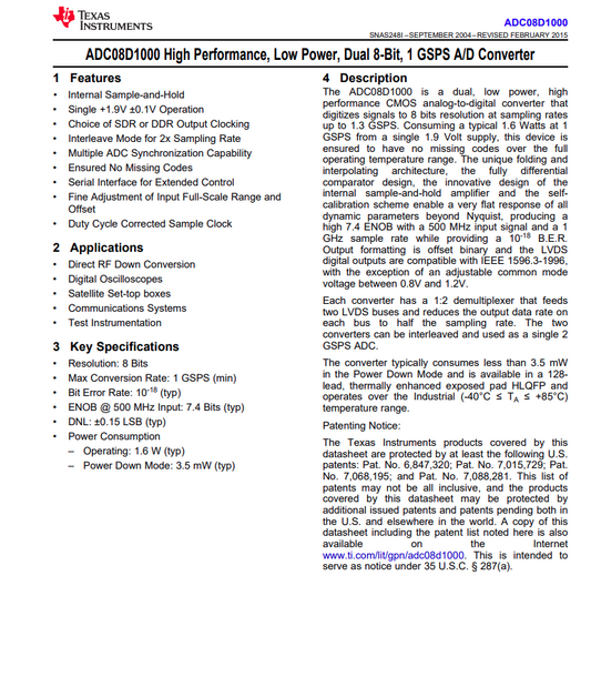 Texas Instruments ADC08D1000CIYB IC ADC08D1000 ADC 8-BIT DUAL 1GSPS