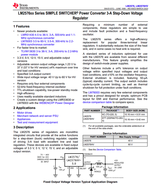 TI# LM2576HVT-ADJ/NOPB - Lot 5 pcs at $21.50 each - DC 19+ Conv DC-DC. TO-220