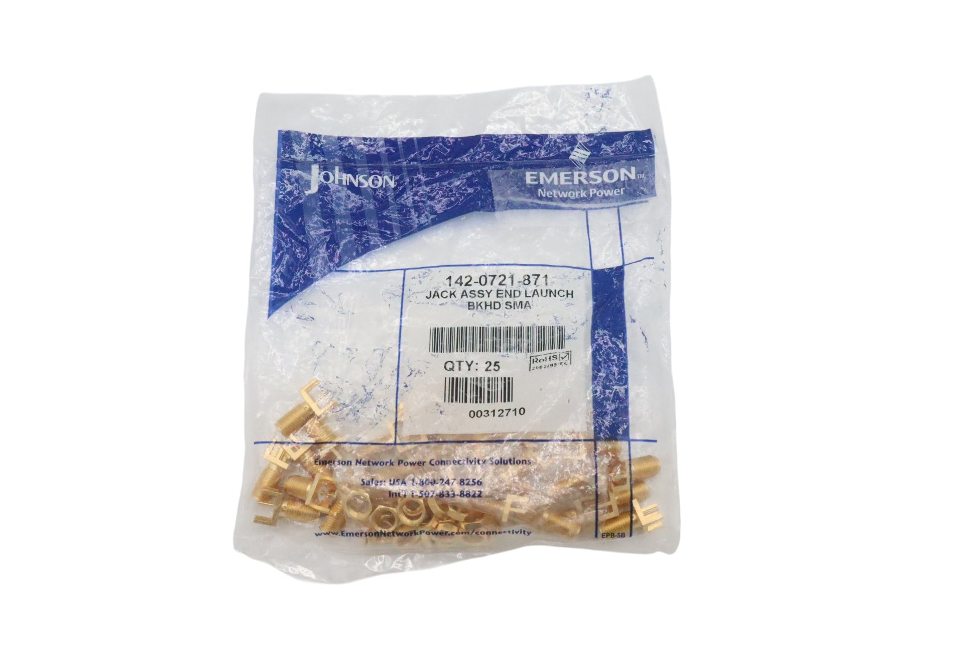 Cinch Connectivity Solutions 142-0721-871 (25 Pack) RF SMA Connector, Female, Panel Mount