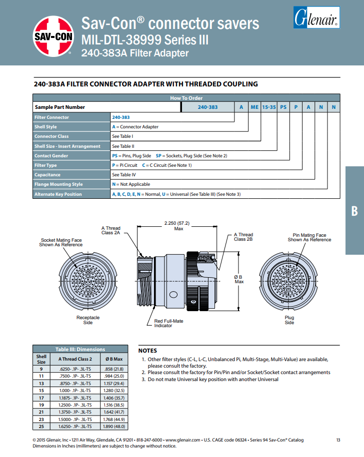 Glenair 240-383AME15-35PSPCNN Filtered Adapter D38999 SER III Plug