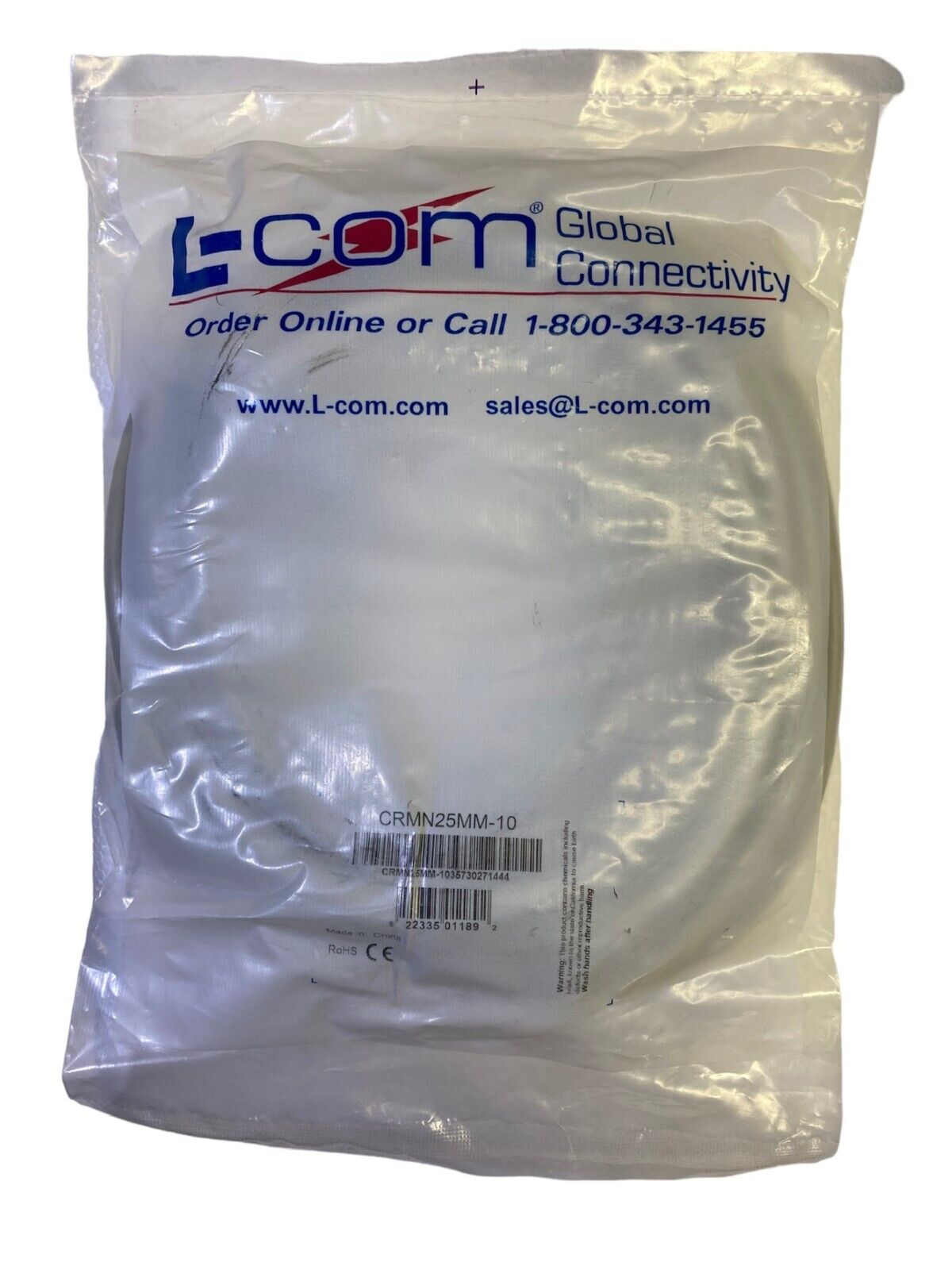 L-COM CRMN25MM-10 Reversible Hardware Molded D-Sub Cable, DB25 Male, Male 10ft